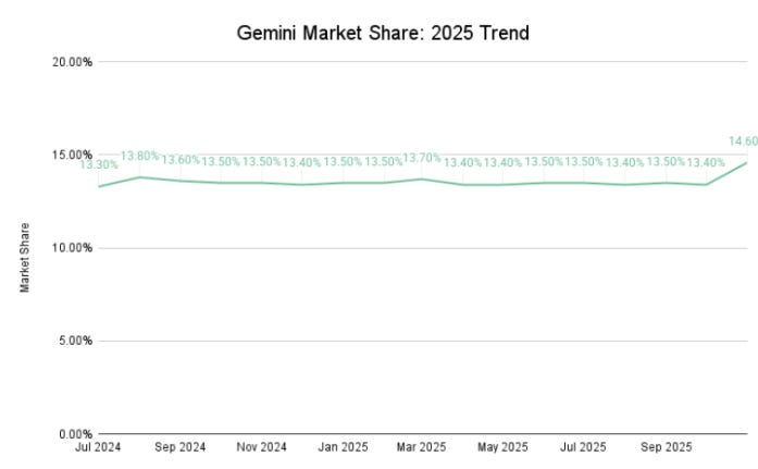 Geminiâs market share visibly jumped in November. Thatâs the first real evidence to support the $1.6tn market cap increase over the last five months.