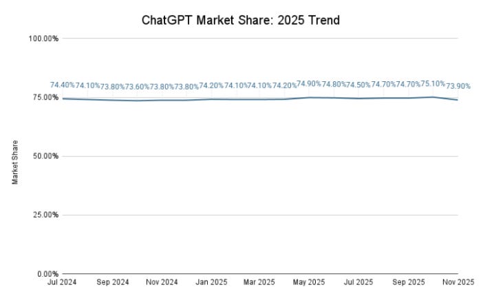 Three years after the launch of ChatGPT and hundreds of billions of Dollars of industry spending later, ChatGPT still owns the chatbot space. It owns 61% of the market and 75% if you include Microsoft Copilot.