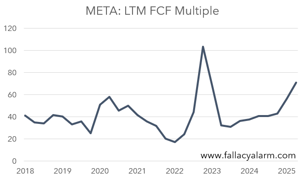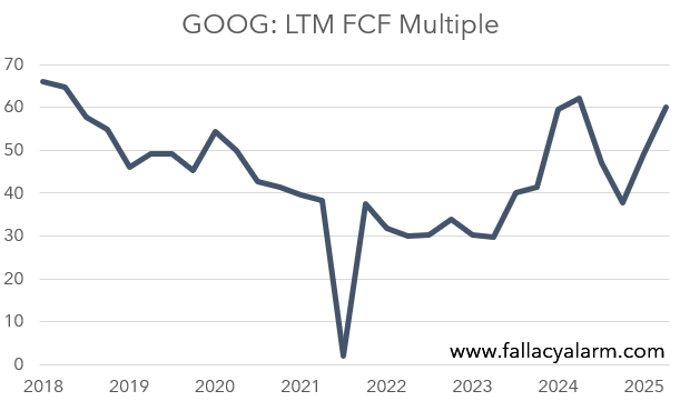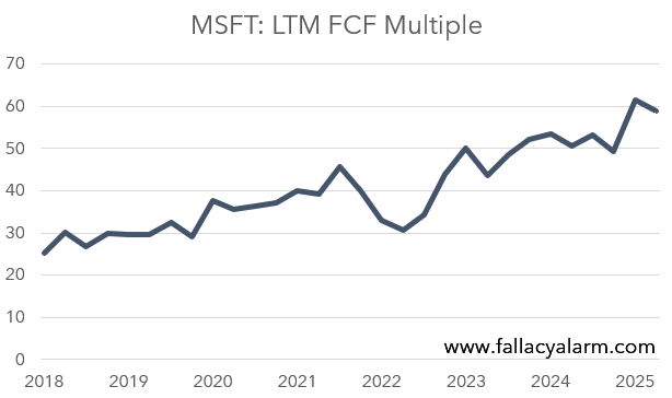 And just like they do for Google, markets consider that a temporary dip for Microsoft as well. Their LTM FCF multiple has risen to almost 60x.