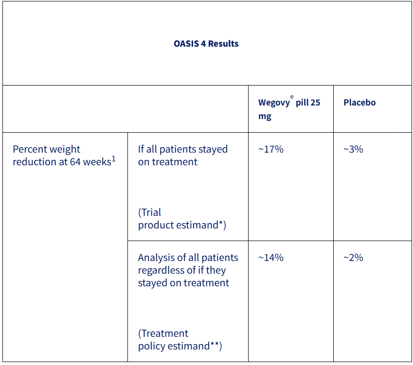 The average weight loss after 64 weeks was 14% vs. 15% after 68 weeks for the injectable version. It does require a daily pill vs. a weekly injection. But I believe that oral semaglutide has the potential to help Novo gain ground again and overall to accelerate GLP-1 adoption.