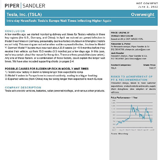 The notion of Tesla being production constrained is extremely important to the investment case. Not only does it make them less vulnerable during a recession, it also provides comfort that they can achieve their lofty production targets. It is therefore very important to continuously monitor whether it is still true.