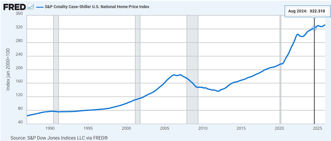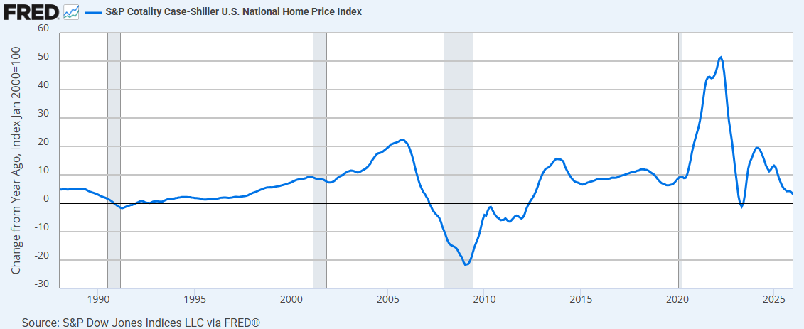 This article has not aged well so far. The S&P Cotality Case-Shiller U.S. National Home Price Index is up just 3% over the 20 months that have passed and the annual rate of price appreciation is closing in on zero.